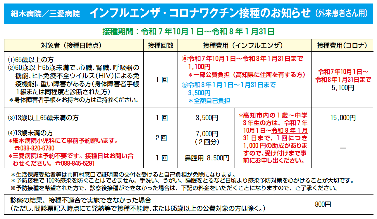 インフルエンザ・コロナワクチン接種のお知らせ - 2025.11.18