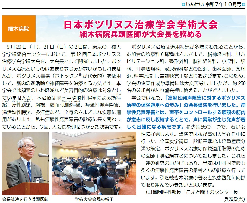 日本ボツリヌス治療学会学術大会(9/20.21)が開催され、兵頭医師が大会長を務めました→